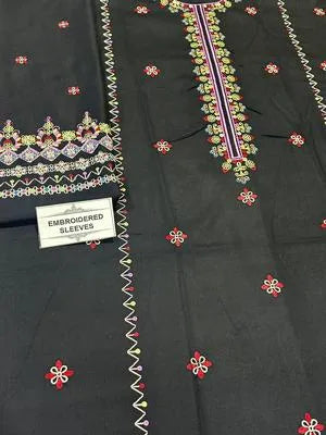 • Shirt Fabric: Dhanak• Pattern: Embroidered• Shirt Front Pattern: Embroidered• Neckline: Embroidered• Sleeves Pattern: Embroidered• Daman: Embroidered• Shirt Back Pattern: Plain• Trouser Fabric: Dhanak• Trouser Pattern: Plain• Dupatta Fabric: Dhanak• Dupatta Pattern: Embroidered• Number Of Pieces: 3 Pcs• Package Includes: 1 x Shirt, 1 x Trouser, 1 x Dupatta• Shirt Cutting: 2.5 Gazz• Trouser Cutting: 2.5 Gazz• Dupatta Cutting: 2.5 Gazz• Color: Black• Note: There might be an error of 1-3 cm due to manual measurement, and slight color differences may occur as a result of varying lighting and monitor effects.• Product Code: MZ12200000562LIAE
